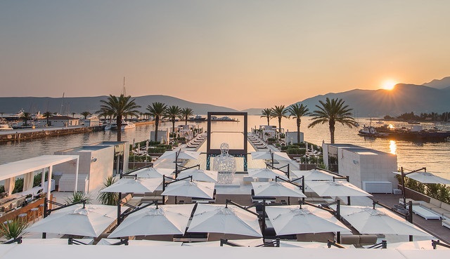 Комплекс яхт-клуба Porto Montenegro включает открытую террасу и ресторан у бассейна, ресторан и бар на крыше, лаундж для членов клуба, городской песчаный пляж и ночной клуб.