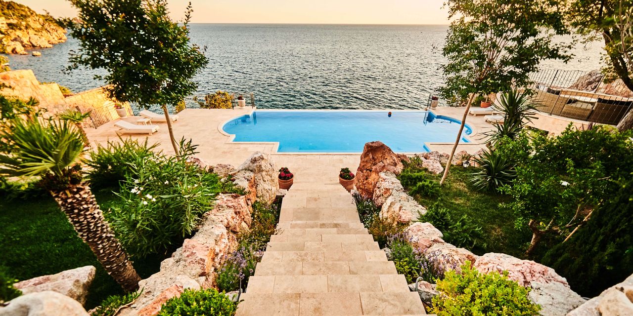 Вилла расположена на первой линии с прямым выходом к морю, гости могут приплыть на яхте, пройтись по красивому саду или просто расположиться у бассейна с эффектом бесконечности, наслаждаясь бокалом шампанского.