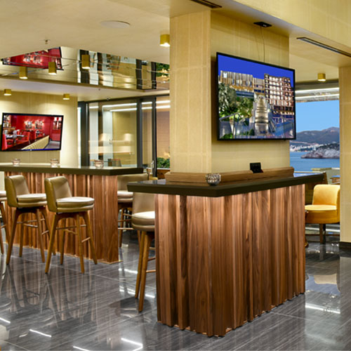Стильный бар Aperitivo с современным интерьером, вышколенным персоналом и хорошей коктейльной картой расположен на территории роскошного отеля Maestral Resort & Casino.