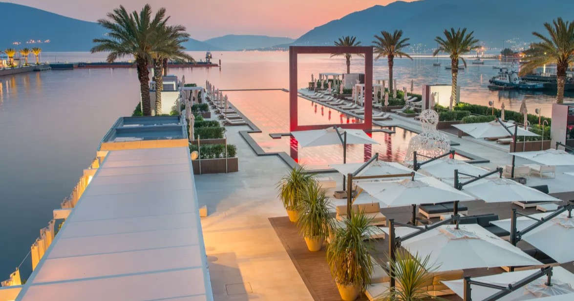 Модный пляжный клуб с бассейном на берегу Которского залива